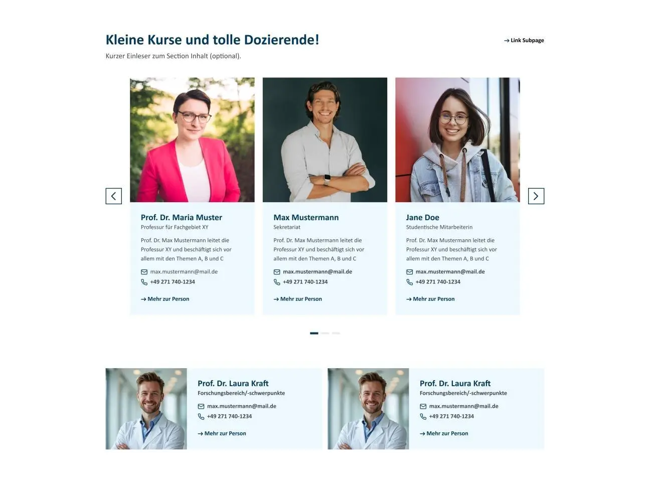 | Contact Person Slider | Kurzprofile mit Kontaktdaten einer oder mehrerer ausgewählten Personen |