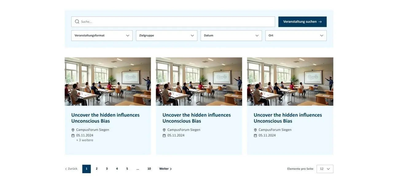 | Events Search | Veranstaltungsliste mit Filteroptionen |