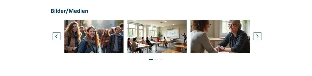 Ein Slider, der als Übersicht dient und ausgewählte Studiengänge in den Fokus stellt. Er wird derzeit ausschließlich auf der Übersichtsseite der Studiengänge genutzt.