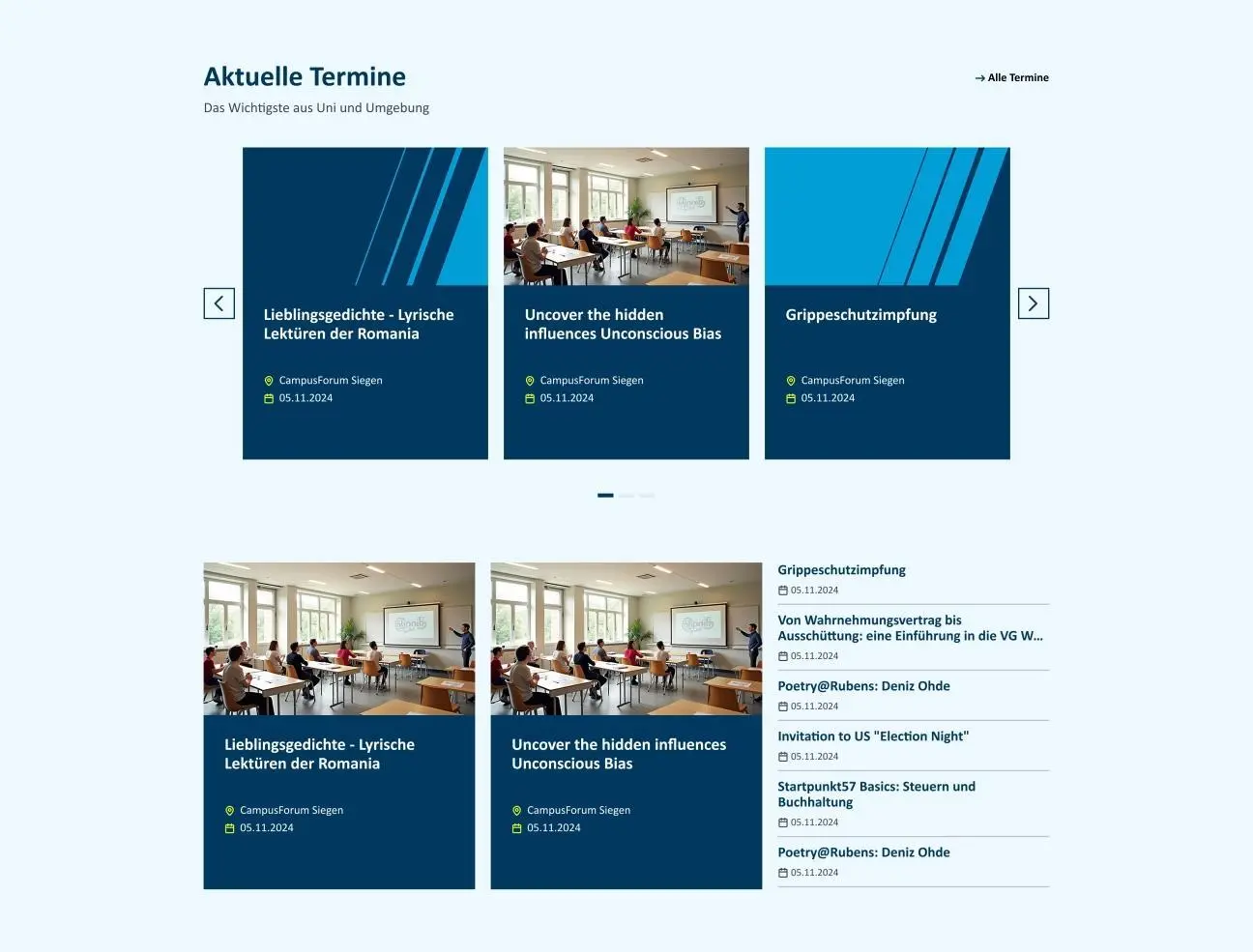 | Event Slider | Liste von Veranstaltungen mit Vorschauoption |